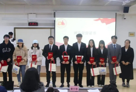 李生策老师揭示投票结果,宣布新一届团学组织成员的当选名单,刘艳老师为其颁发聘书,并合影纪念。