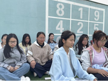 在2024级1班心理委员覃诗静的引导下,班级同学进行呼吸冥想。全体同学端坐在草坪之上,双目微微闭合,摒弃一切杂念,全神贯注地遵循心理委员引导的冥想步骤。从头部到脚部,同学们依次放松身体各部位的肌肉,深度沉浸其中,真切感受内心逐渐弥漫开来的宁静与平和。