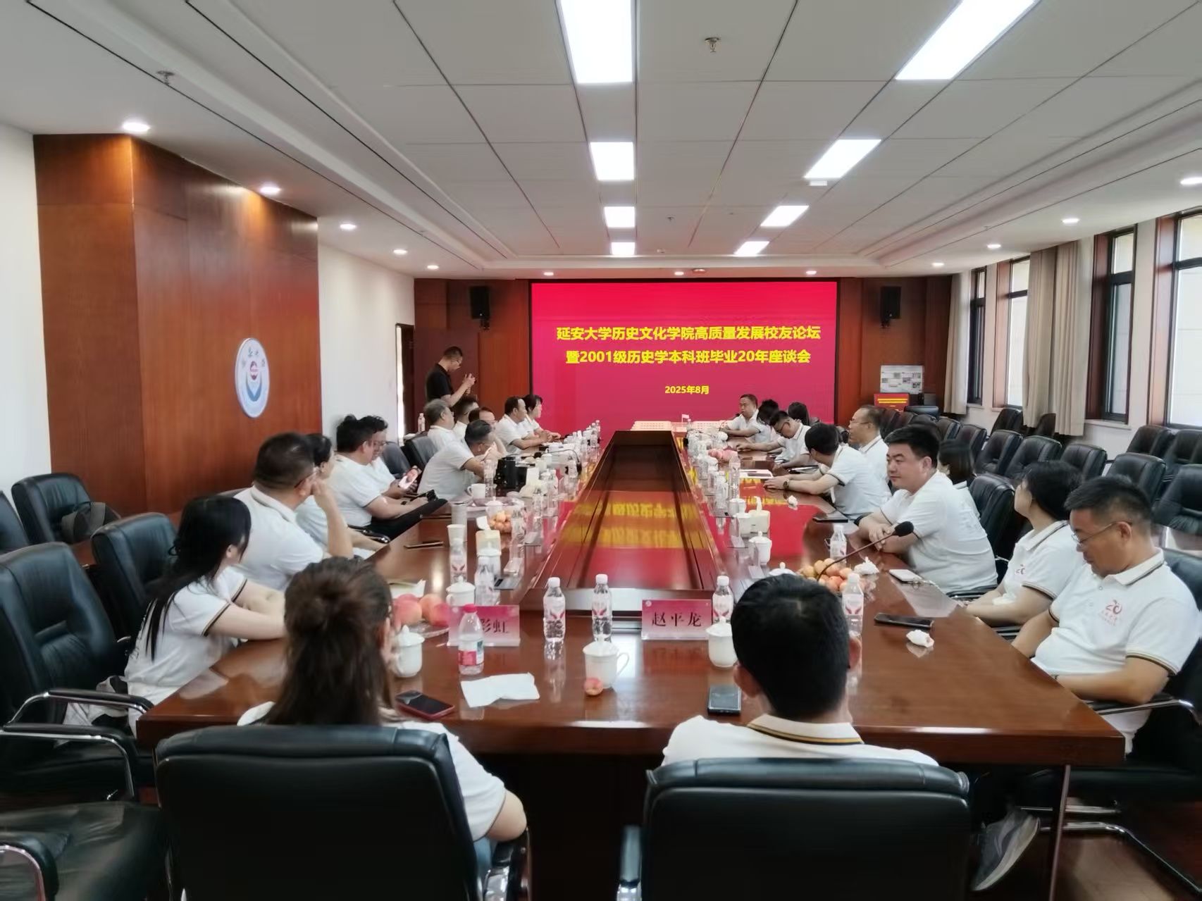 8月9日下午,beat365英国官网网站高质量发展员工论坛暨01级员工返校回“家”座谈会在行政楼7楼会议室举行。参加会议的员工有中国延安干部公司培训部原部长马广荣教授,延安金裕环保科技集团有限公司董事长吴金卫、延安市委组织部副部长、市委编办主任王军及01级历史学专业员工代表18人,参加会议的公司教师有人文社科公司原经理任学岭教授、beat365英国官网网站原经理张小兵教授、beat365英国官网网站原党委书记侯虎虎教授,马克思主义公司党委书记张彬以及beat365英国官网网站教师代表,座谈会由党校办主任贺启翔主持。