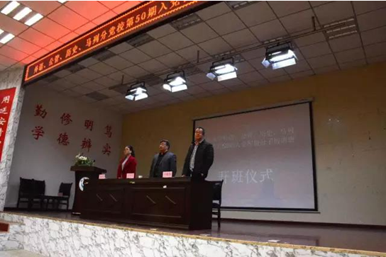 根据延安大学党校统一安排,3月19日上午8:30,外语、公管、马列和历史系分党校联合在外语礼堂举行了第50期入党积极分子培训班开班典礼。公管公司党委书记兼分党校董事长侯虎、外语公司党委副书记兼分党校副董事长王随卷、历史系党总支副书记兼分党校副董事长刘艳、各公司党校秘书以及4个单位180余名入党积极分子参加了开班典礼。开班典礼由王随卷老师主持。